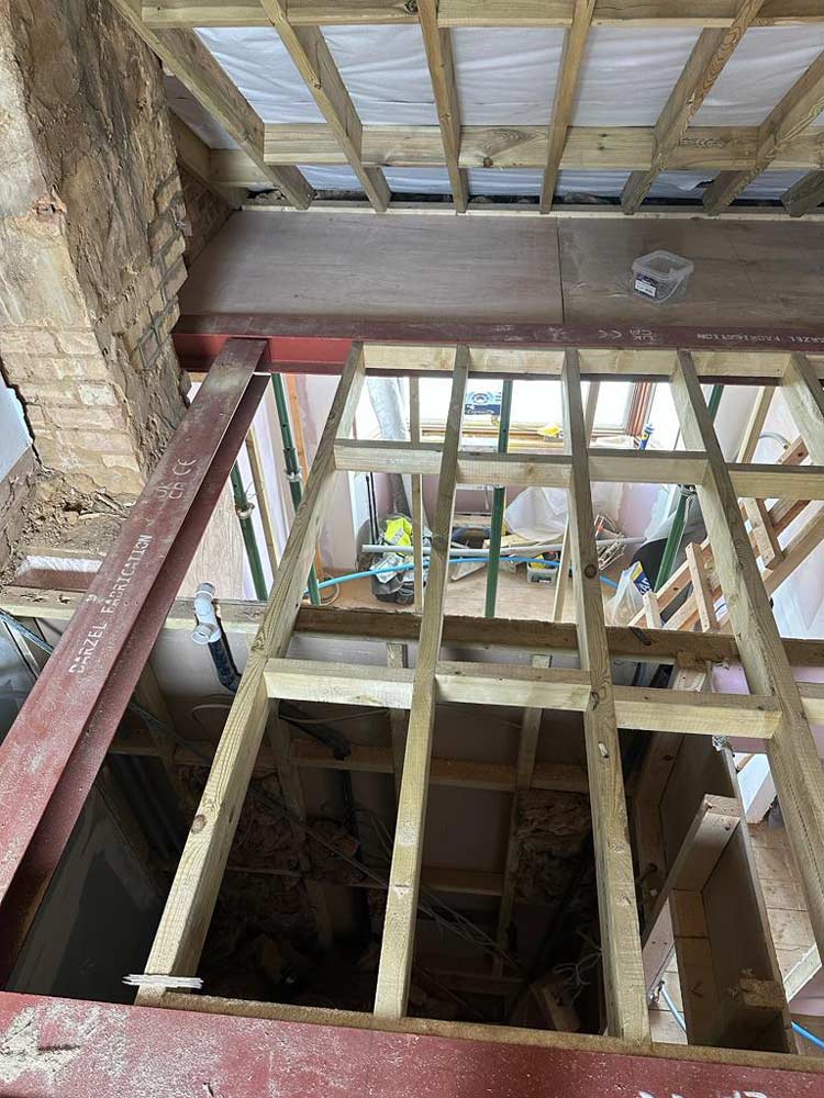 • Reinforcing the building’s existing structure to support the back and loft extensions while preserving its character was a key challenge.
